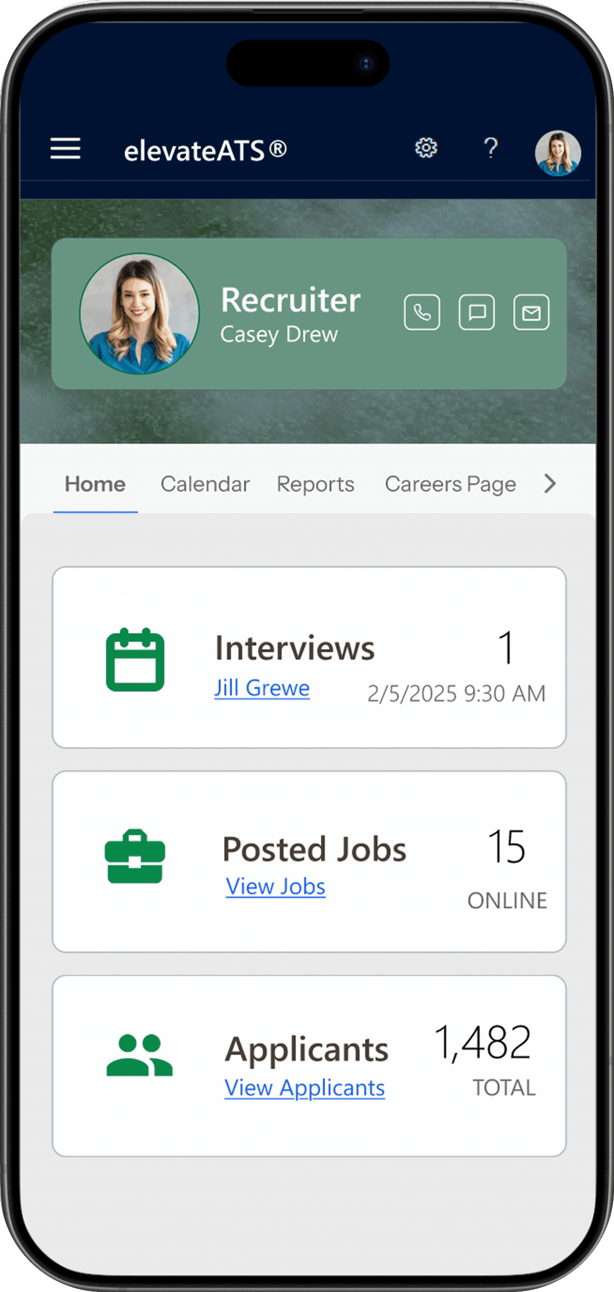 Calendar Integration (Outlook, etc.) identifies hiring team availability for interviews and suggests openings for applicants to select preferred interview times. Enable video interviews, automatic reminders and calendar invites, all from your ATS.